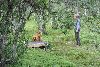 Vi har hatt en herlig helg i Trysil. På en idyllisk plass, rett ved elva. Med Inger Helene som vertinne mangler man ingen ting. God mat og drikke, avslappet stemning og hyggelige dager for både to- og firbente. Jakttrening med vilt sto på programmet. Selv slet jeg med både nakke og rygg i helgen som i hele forrige uke. :-( Men likevel så ble jeg (etter hvert) klar for å trene litt med gull-jenta mi, og vi fikk gjennomført endel fine økter. I tillegg fikk Bhest burtrening, leke villbass med Kaja (og litt med kusine Zarah også) og han fikk gått sitt første dråpeutlagte blodspor. Tusen takk Inger Helene og Perly for fine treningsøkter og koselig timer med avlspping i solsteika. Og jeg fikk faktisk litt farge også på leggene! Selv om myggstikk og flekkfluebitt har sørget for mange kløende sår. :-( Det ble ikke tatt noen bilder i år, men jeg har bilder på netthinnen av Kaisa med ulike typer vilt i munnen. Noe trening gikk veldig bra, annet var litt så der. Tolling og gåseapportering var veldig bra, noen ganger var hun kjapp i opptaket på endene, mens andre ganger blir hun omstendig, hun skal liksom være sikker på at hun har et godt og balansert grep, det går på bekostningen av kjappe opptak. Men hun er jo helt spontan i forhold til at hun plukker alt selv, uten noen kommandering eller annet fra meg.